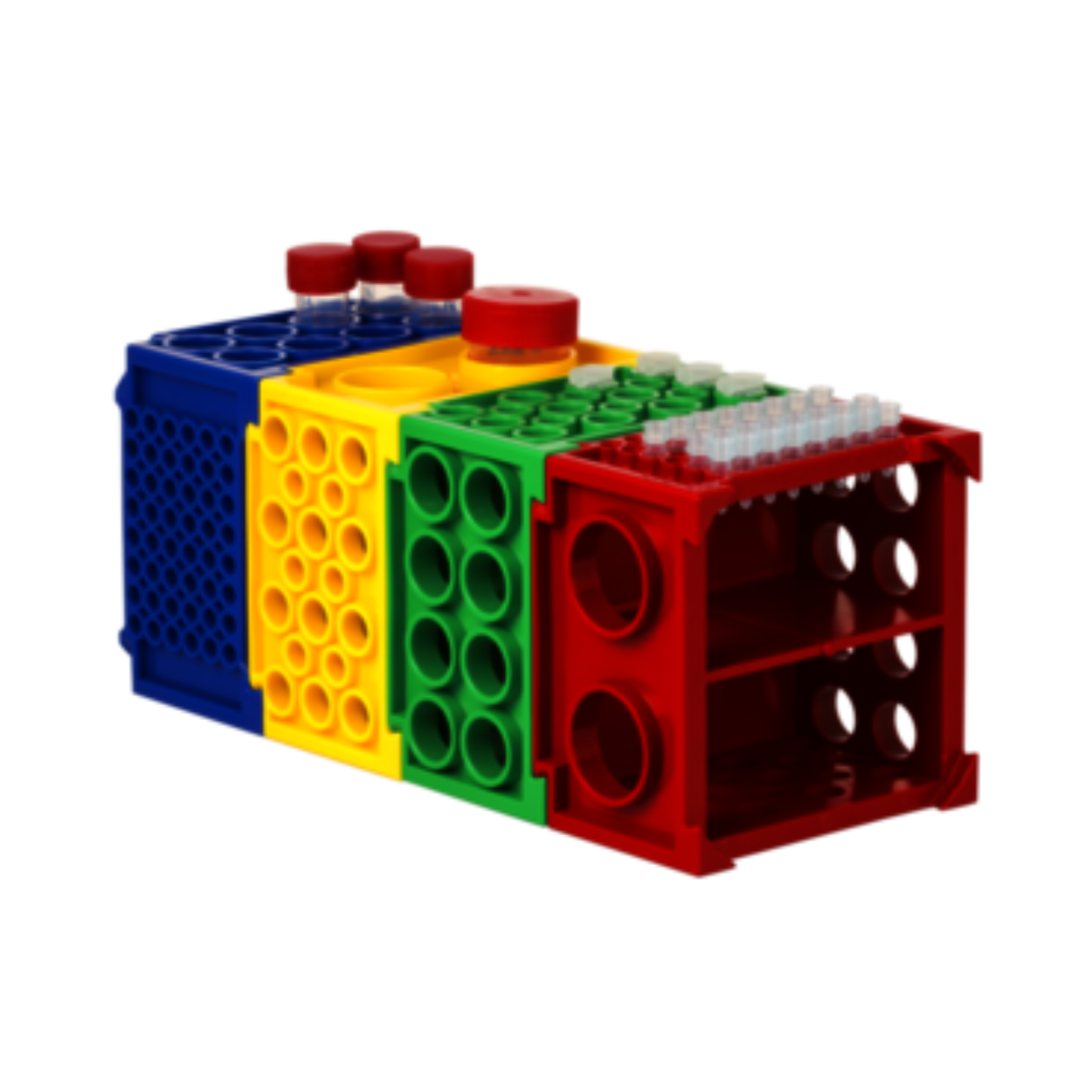 Gradilla modular fabricada en polipropileno (PP) resistente, autoclavable hasta 121 °C, ideal para organizar y sostener tubos y tubos de ensayo de Ø 4 a 30 mm. Diseño en formato 12 x 8, multicolor, adecuada para laboratorios que requieren eficiencia y orden.